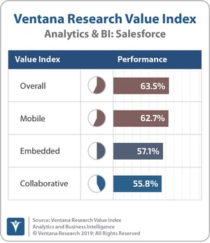 We are happy to offer some insights on Salesforce drawn from our latest Value Index research, which assesses how well vendors’ offerings meet buyers’ requirements. Earlier this year we published the Ventana Research Value Index: Analytics and Business Intelligence 2019, the distillation of a year of market and product research efforts by Ventana Research.